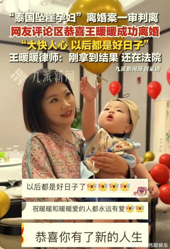 泰国的事业没了,她就回国内重新开始,搞起了自媒体。现在她不光事业慢慢有了起色,还重新有了一个自己的小宝宝,真是太不容易了!她做自媒体主要就是分享一些母婴产品,在网上也攒了几百万粉丝呢,挺厉害的。这七年来,她心里头最大的事,就是赶紧跟那个害了她一辈子的人把婚离了,彻底划清界限。这离婚官司打了足足两年,就在今年10月10号,法院一审判决离婚了!而且啊,俞某冬还得给她五十万的离婚赔偿。你都不知道,之前俞某冬有多嚣张,他提的离婚条件居然是要王暖暖给他三千万!当时还有些朋友劝她,算了算了,给他钱,赶紧跟这个恶魔撇清关系得了。可王暖暖硬是没松口,她说:“我一分钱都不能给他!因为那不是正义的事!”这话听着就硬气!